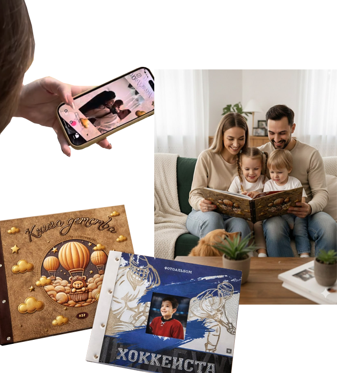 Это не просто фотоальбом — это ваша живая история, которая оживает через телефон и остаётся с вами на всю жизнь. Теперь вам не нужно хранить фото и видео на разных телефонах, флешках и дисках. Всё будет собрано в одном месте, надёжно и красиво — ваша семейная история больше не потеряется